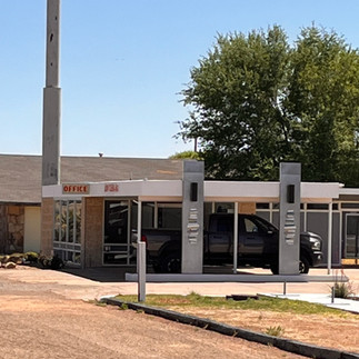 Onward we went through Vegas and saw Lake Mead but no glimpse of Hoover Dam. After a noisy night at Kingman, AZ Cracker Barrel we found a campground in Santa Rosa that allowed night registration - phew. We then the next day decided to check out Old Historic Route 66 in Tucumcari, New Mexico. I know they are trying to preserve the look of Route 66 but I was surprised at the number of old vacant businesses from way back they just left there so it just looked like a run down ghost town with current business filtered in. Weird!