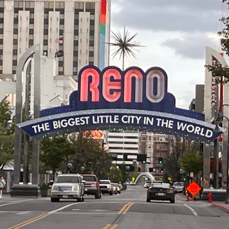 One thing about this trip was the elevation. We agreed we needed to avoid over 5,000 feet so we had to redo our path home. We did not want to drive back down to Arizona through California so we decided to head to Reno, Nevada and get to Arizona through Nevada. It was a challenge to find stops lower than 5,000. Traveling through the Sierras into Nevada were lots of ups and downs and still snow in parts! Our first stop after saying goodbye to California was Fox Brewery in Reno as part of RV Overnights. They were very welcoming and we stayed in their parking lot and also enjoyed a delicious dinner with beer of course!