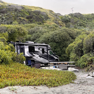 We left the Sierra Mountains and headed for the coast on Friday April 10th and traveled to Sonoma State Park Wright’s Beach. We were a little bummed the weather forecast was for rain but the ocean is great no matter what the weather. When we booked we could only get a site that did not have an ocean view and Tom mentioned that and the park attendant said an ocean view site became available so we took it! What a wonderful view! She told us to come back in the morning to see if any more beach sites become open. It took a little to level the motor home so we hoped our site would be open. As luck would have it the person who was walking ahead of us arrived at the office to switch his site - he was supposed to be in our site! So we got it for another night!